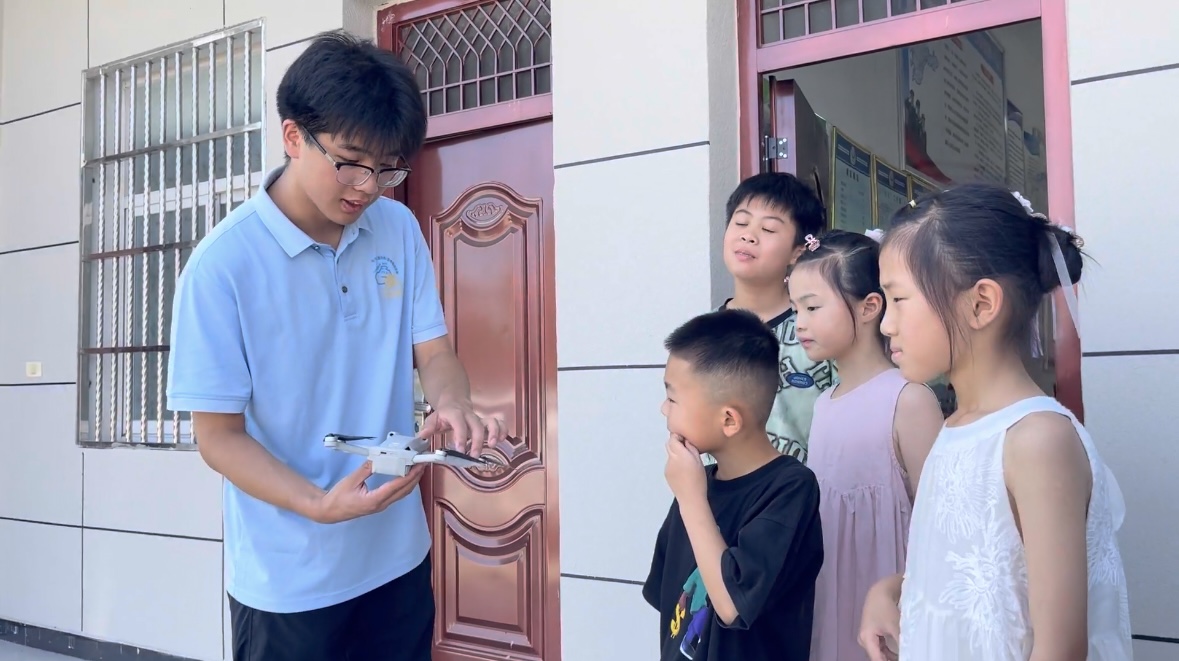 科普結(jié)束后,實(shí)踐隊(duì)員帶來(lái)了無(wú)人機(jī)科普體驗(yàn)。“看!它飛起來(lái)了。”孩子們興奮地指著空中的無(wú)人機(jī)說(shuō)道。隊(duì)員們操控著無(wú)人機(jī)在空中靈活盤(pán)旋、俯沖、懸停,引得孩子們陣陣歡呼。