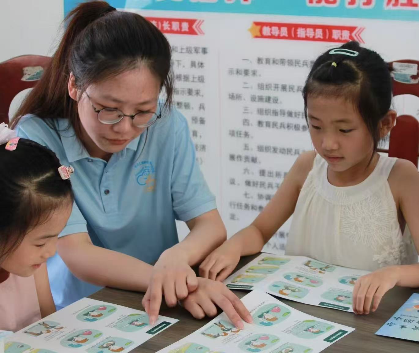 圖為實(shí)踐團(tuán)成員向孩子們講述防溺水知識(shí)。