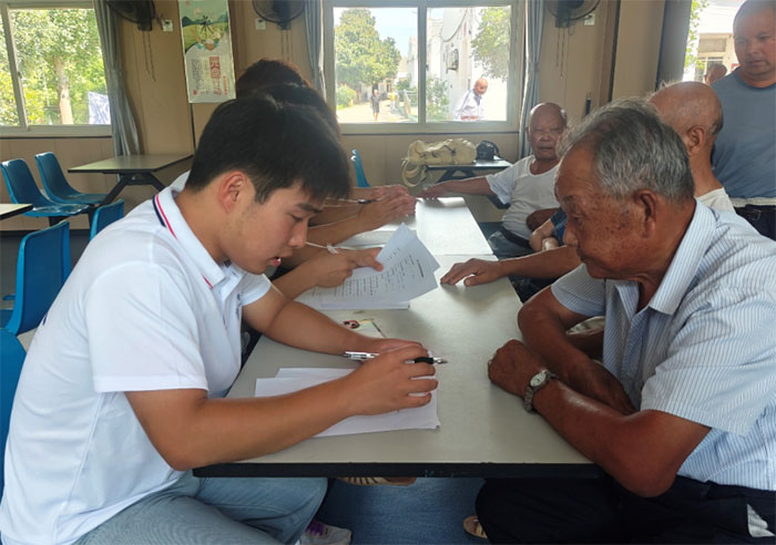圖為銀發(fā)康養(yǎng)服務(wù)團(tuán)發(fā)放調(diào)查問卷。鄭宇恒供圖。