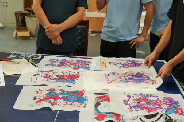 圖為汪老師為團隊成員介紹年畫制作工藝(李宇霖供圖)