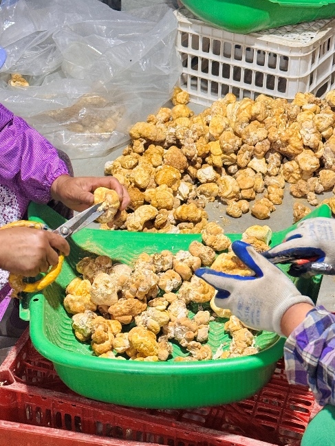 從大棚出來,張局長帶領大家來到產品展示區,她向隊員們介紹,模范村這些年一步步構建起從種植到銷售的完整猴頭菇產業鏈,實現了產銷一體化。村里積極引入新的培育技術和加工設備,產品的質量和產量穩步提升。張局長指向展架上的貨品——猴頭菇粉、猴頭菇醬、菌菇參湯包等20多種產品整齊陳列,“合作社一直沒停下創新的腳步,這些都是咱們不斷嘗試的成果。”這些話讓隊員們對當地猴頭菇產業的多元化發展有了更直觀的感受。