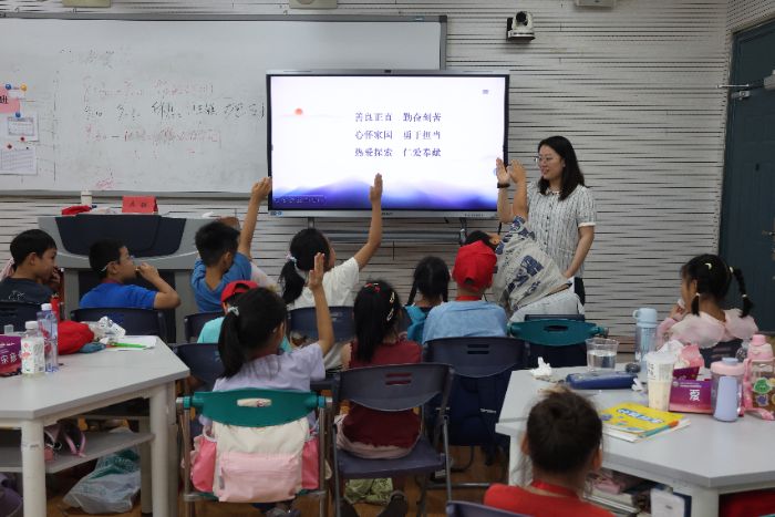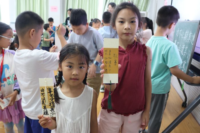 7月11日下午,實(shí)踐團(tuán)在南通大學(xué)嗇園校區(qū)開(kāi)展“張謇精神勵(lì)童心,興邦強(qiáng)國(guó)少年行”暑托班宣講活動(dòng)。活動(dòng)緊扣弘揚(yáng)張謇精神的研學(xué)主題,依托在張謇紀(jì)念館搜集的實(shí)業(yè)檔案、研學(xué)中心整理的教育史料,將前期對(duì)張謇故事的挖掘成果融入各環(huán)節(jié),借助具體事例講解其“實(shí)業(yè)救國(guó)、教育興國(guó)”的精神內(nèi)核。“謇行之簽”環(huán)節(jié)中,85名學(xué)生在書(shū)簽上書(shū)寫(xiě)張謇教育名言,進(jìn)一步深化對(duì)張謇教育理念的理解,使精神傳承更具實(shí)踐性與感染力。