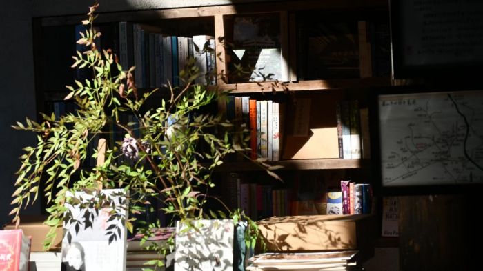 圖為團隊成員在宏村采訪文創店經營者 當天下午,我們走進了由老供銷社改造的“碧山書局”。高高的書架頂著老屋梁,擺滿了書籍,空氣中卻彌漫著現磨咖啡的香氣。這里不再是單純賣貨的供銷社,而是一個融合了閱讀、休憩、交流的文化空間。它靜靜地告訴我們,老房子完全可以煥發新生,承載起新的、滋養人心的功能。