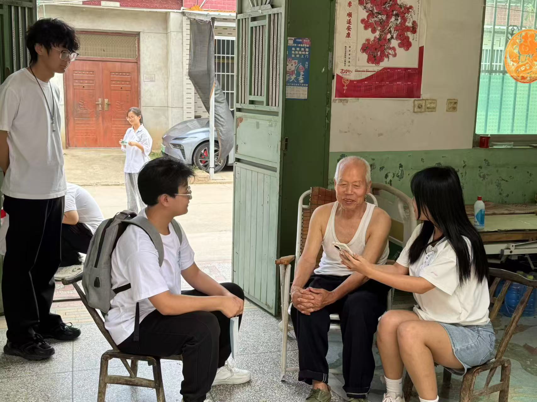 在北牛村、中牛村,實踐團隊員們化身“銀齡輔導員”,一對一、手把手地教老人們使用智能手機,從解鎖屏幕、調節音量到添加聯系人、發起視頻通話,每一步都耐心細致,確保老人們能夠掌握基本操作。除了科技服務,實踐團還深入獨居老人家中,清掃院落、擦拭門窗、整理雜物,用實際行動傳遞溫暖與關懷。同時,隊員們兼任“反詐宣傳員”,通過面對面交流、案例講解和發放宣傳單頁等形式,向村民普及防詐騙知識,增強了老人們的防騙意識。