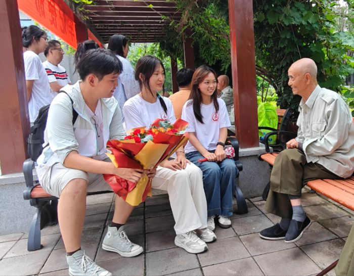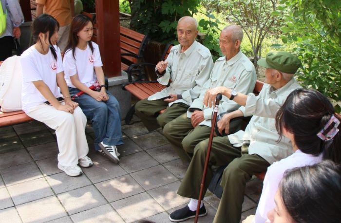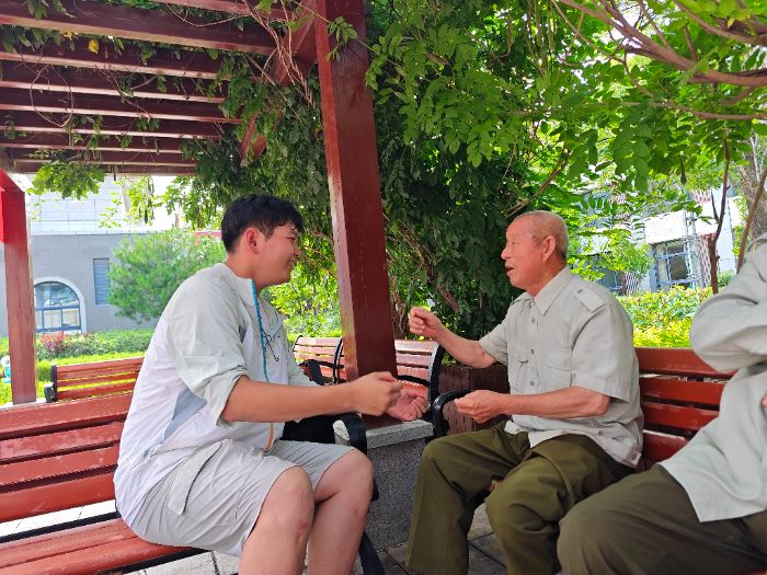 與老人一起聊天交流 潘宇航攝