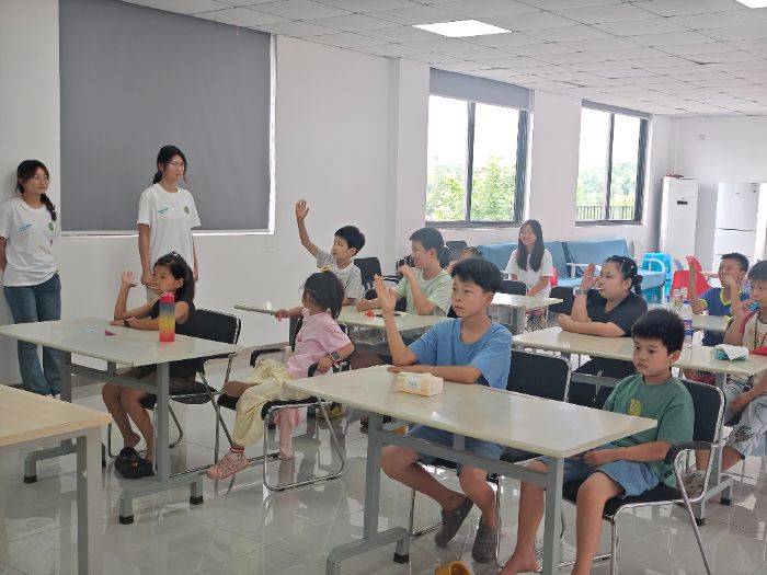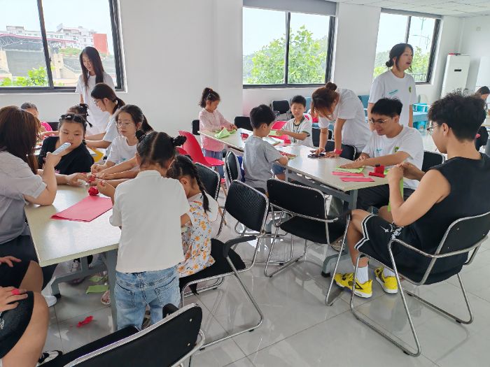 六天的時光在歡笑與專注中悄然溜走,當最后一天的手工課結束時,孩子們自發將作品整齊擺成“愛心”形狀,有的在便簽紙上畫下志愿者的模樣,寫下“謝謝哥哥姐姐”;有的拉著志愿者的衣角,小聲問“明天還能來嗎”。這些細碎的瞬間,成了實踐活動最溫暖的注腳。
