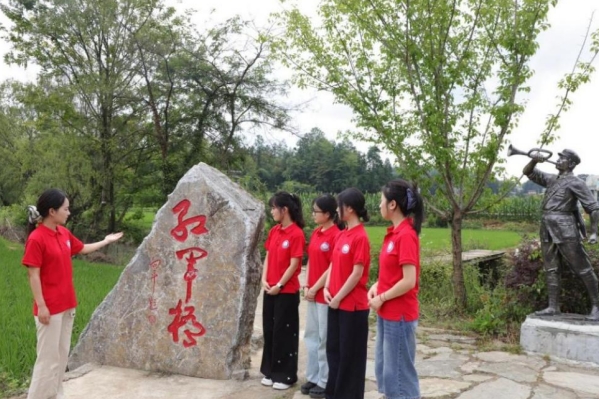 “紅日升在東方,其大道滿霞光……”激昂的歌聲在青山綠水間回蕩。實踐團成員們自發齊唱《萬疆》,清澈的嗓音與潺潺流水和鳴,仿佛與歷史長河中的革命先烈展開跨越時空的對話。這歌聲,既是對用英烈們的深情告慰,更是新時代青年繼承紅色基因、勇擔時代使命的莊嚴宣誓。如今的紅軍橋已化作一座精神豐碑,見證著革命先輩的崢嶸歲月,也昭示著后來者永志不忘的初心。實踐團成員們在此立下誓言:必將讓紅色精神在新時代綻放更加璀璨的光芒,以青春之我書寫無愧于先烈、無愧于時代的新篇章。