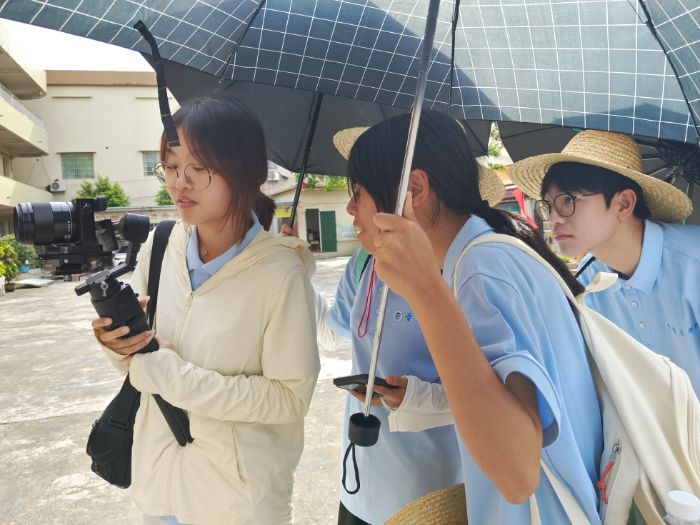 圖為“音”你而來(lái)突擊隊(duì)隊(duì)員進(jìn)行紅色文化宣傳視頻拍攝工作