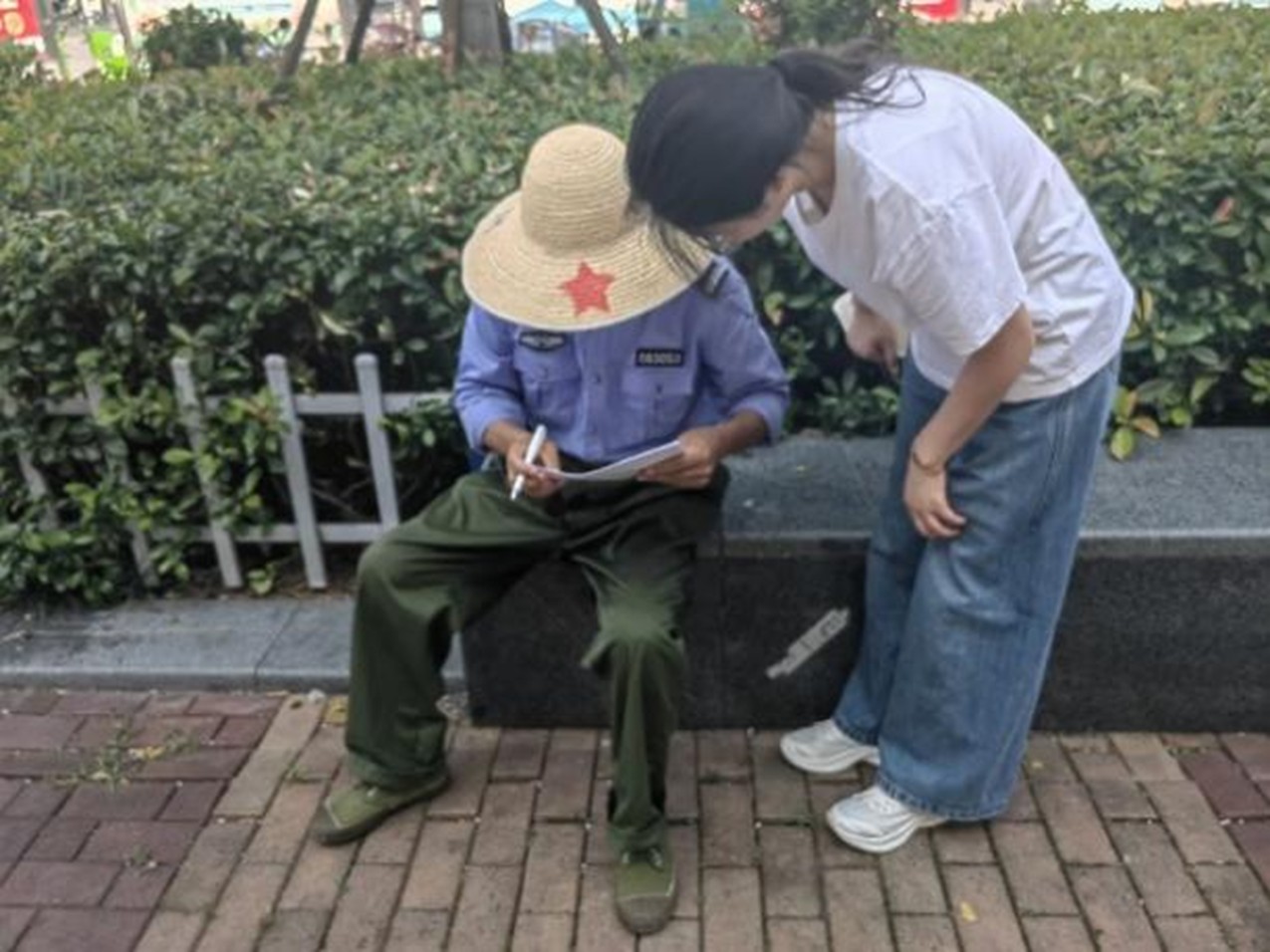 實踐團(tuán)成員走訪街道發(fā)放調(diào)查問卷 陳李娜供圖