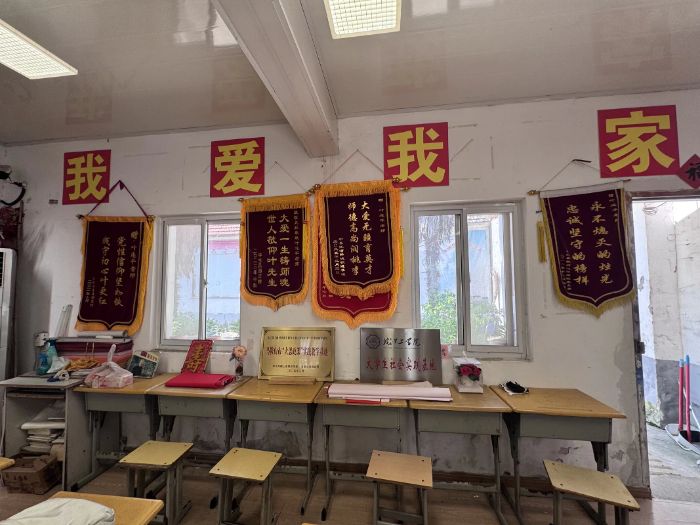 踏入卜陳學(xué)校,仿佛踏入一段寫滿堅守與奉獻(xiàn)的歲月長卷。在“為黨育人、為國育才”的新時代教育使命指引下,葉連平老師用一生的心血,為鄉(xiāng)村教育添磚加瓦。實踐隊員走進(jìn)卜陳學(xué)校,在校園榮譽墻前駐足,認(rèn)真端詳葉連平老師的榮譽證書。從1985年“安徽省優(yōu)秀教師”稱號,到2021年“全國優(yōu)秀共產(chǎn)黨員”表彰,每一項榮譽都見證著葉老師的教育初心。墻上那句“我希望我的最后一口氣是在講臺上呼出”振聾發(fā)聵,久久回響。