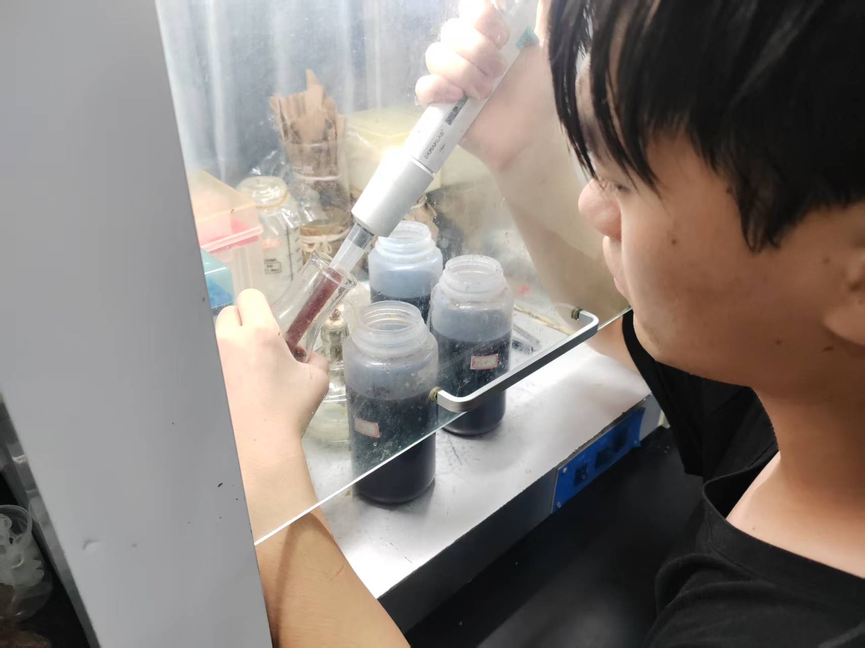 在校雙創平臺及食品與生物工程學院實驗室平臺支持下,團隊重點攻關兩項技術創新:一是利用篩選的優良菌株開發桑葚發酵飲料,通過專利菌株發酵技術,開發新型桑葚鮮果發酵產品,該產品已形成詳細工藝參數,已制作批量樣品,交付農場進行產品試用;二是設計桑葉深加工產品,目前團隊已篩選出功能菌株,進行發酵試驗及技術攻關。