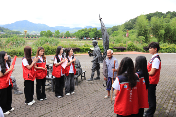 (圖為服務隊成員與廖開華老人交流感悟)當地黨史學者受邀為團隊解讀調查背后的故事,結合才溪鄉從革命老區到鄉村振興示范地的發展變遷,闡釋“四下基層”“真抓實干”精神在新時代的傳承與發展。在“沒有調查就沒有發言權”紀念碑前,隊員們圍繞“紅色精神與鄉村振興”展開座談,結合才溪光榮亭的英雄事跡,探討紅色文化資源對地方發展的賦能作用,深刻理解“調查研究”既是工作方法,更是破解發展難題的鑰匙,而這正是新時代青年為中國式現代化建設貢獻力量的重要途徑,是愛國擔當的具體體現。