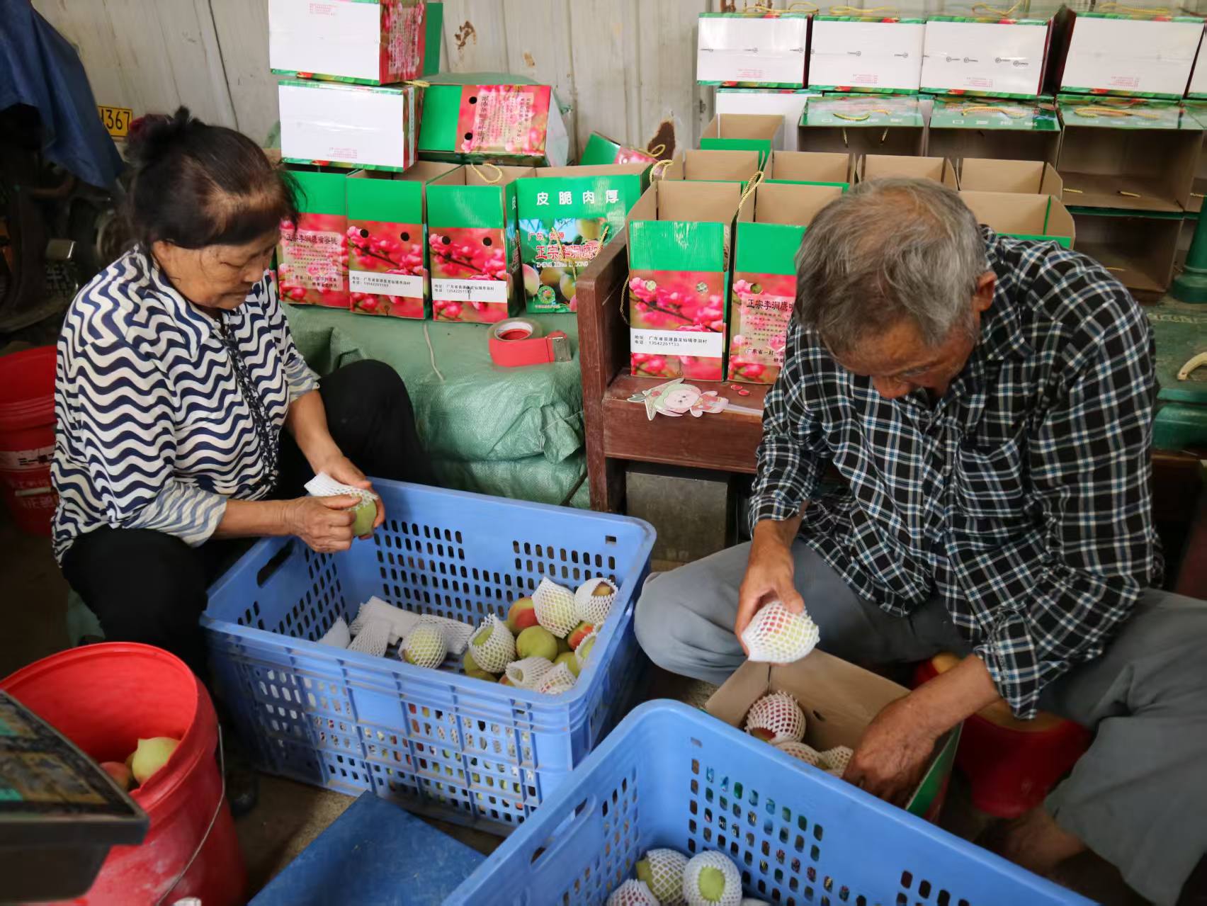 圖為果農們打包鷹嘴桃(羅鈺婷供圖)