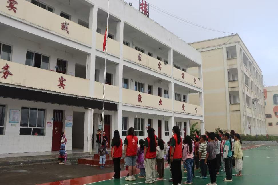 清晨8時,推普團成員與新寨小學“推普小先生”夏令營的孩子們共同舉行升旗儀式。伴隨著嘹亮的國歌聲,團隊成員領誦國歌歌詞,鏗鏘有力的字句在校園上空回蕩。“通過標準普通話的示范朗誦,我們希望孩子們在感受語言魅力的同時,厚植家國情懷。”團隊負責人表示。