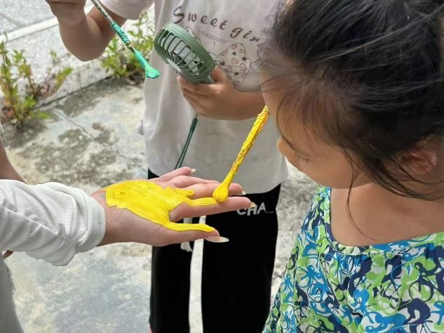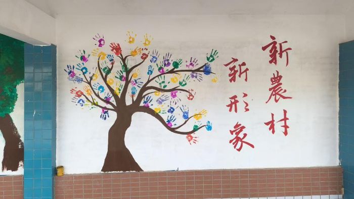 值得一提的是,墻繪創(chuàng)作中加入了一場特別的互動(dòng)——隊(duì)員們帶領(lǐng)村里的小朋友們用顏料印下了屬于他們自己的彩色手掌印。小小的手掌印不僅為墻繪增添了童趣,更象征著曹嶺村的未來與希望,讓孩子們?cè)趨⑴c中對(duì)家鄉(xiāng)的發(fā)展有了更直觀的感受。“畫里是我們的今天,掌印是他們的明天。”隊(duì)伍負(fù)責(zé)人介紹,這些墻繪不僅是"三下鄉(xiāng)"課堂的延伸,更是一扇窗口——透過它,曹嶺村的孩子們得以更加深入了解家鄉(xiāng)的美,在小小的心靈中播下熱愛鄉(xiāng)土的種子。