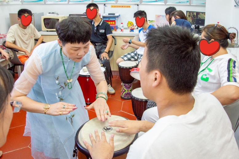 心靈課堂療愈上,“國(guó)家二級(jí)心理咨詢師”連麗雙老師借助鼓等樂器,為家長(zhǎng)和孩子開展放松教學(xué)。“兩叩兩擊”的節(jié)奏中,鼓聲帶來的聽覺體驗(yàn)與身體律動(dòng)相結(jié)合,為孤獨(dú)癥兒童提供了特殊的感官培訓(xùn)。