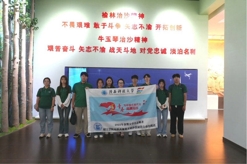 為感召偉大治沙精神,響應(yīng)“美麗中國(guó)·青春行動(dòng)”號(hào)召,2025年7月17日,陜西科技大學(xué)輕工科學(xué)與工程學(xué)院(柔性電子學(xué)院)“植此青綠”社會(huì)實(shí)踐團(tuán),懷著對(duì)生態(tài)治理的崇高敬意,走訪榆林市靖邊縣治沙教育基地,用腳步丈量這片從“沙進(jìn)人退”到“人進(jìn)沙退”的奮斗熱土,親身感悟榆林人民書寫綠色奇跡的壯麗史詩(shī)。