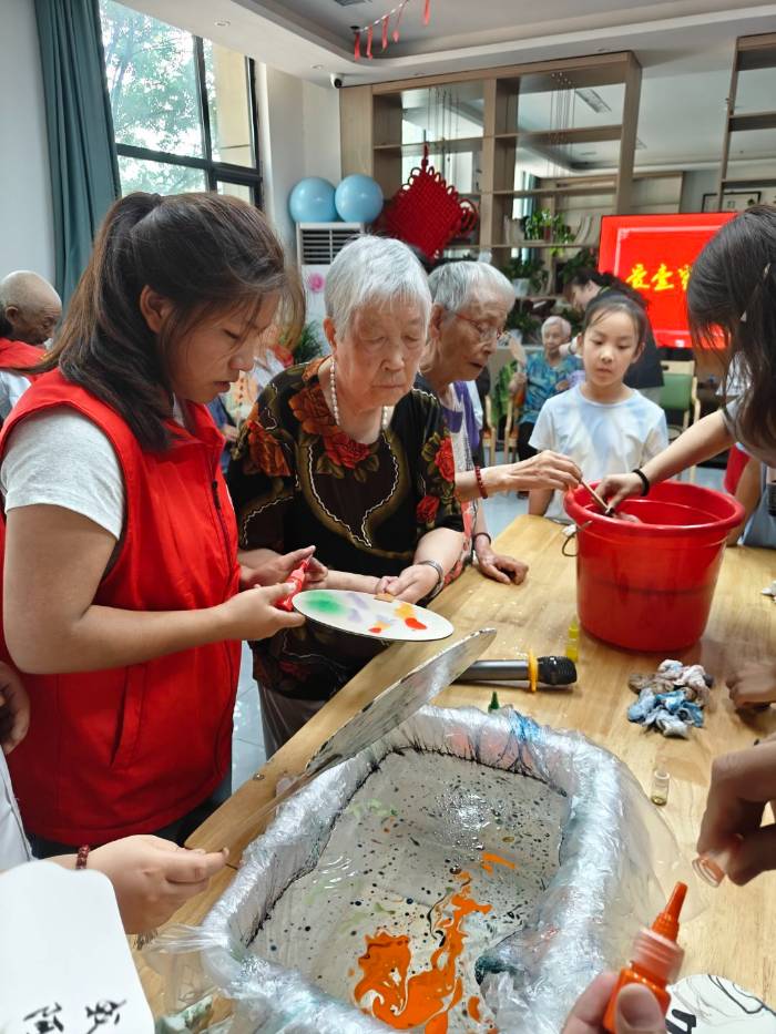 群體互動里,文化傳承暖人心。在敬老院的活動中,志愿者們帶領小朋友與老人一同調漆繪扇。素白扇面上,山水花鳥漸次暈染,吉祥紋樣躍然紙上。老人們在與孩童的互動中,不僅見證傳統工藝在指尖流轉傳承,更在笑語與墨香里真切觸摸到陪伴的溫度,讓文化交流成為情感聯結的橋梁。