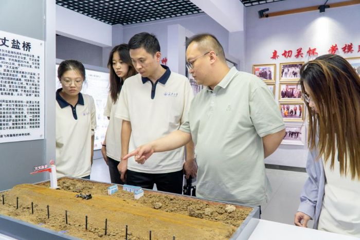 圖為實(shí)踐隊(duì)參觀學(xué)習(xí)公路文化展示館沙盤模型