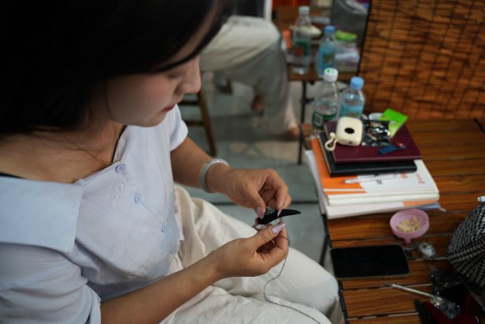 (圖為阿克拉送為筑夢隊員繡編發卡。孫妮供圖)