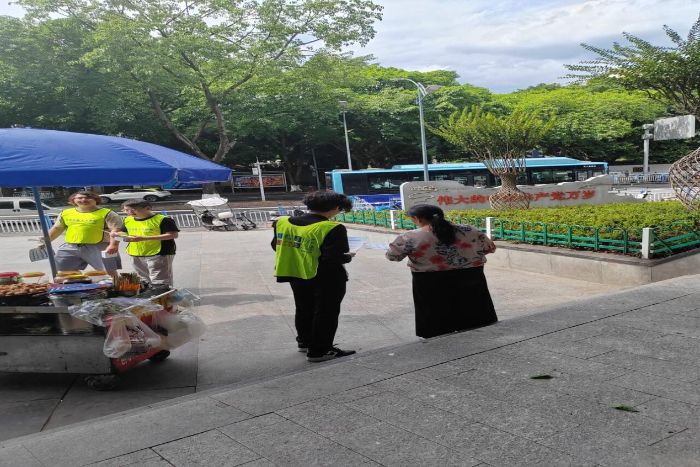 活動中,志愿者們身著綠色馬甲活躍在社區一線。他們在地鐵站口、居民樓棟發放消防安全手冊300余份,覆蓋200余人次,結合夏季用電高峰特點,重點講解超負荷用電隱患、樓道雜物清理等防火知識,有效提升居民安全意識。同時,實踐隊在兩路街道道路交通安全沙坪勸導站協助交通管理,頂著烈日勸導不文明行為,提醒騎乘人員佩戴頭盔,引導行人遵守信號燈,助力社區交通安全。