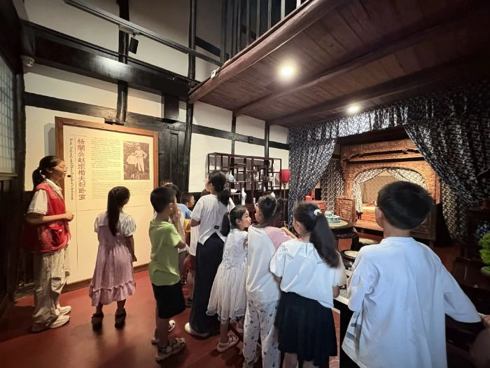 在講解員的帶領下,小朋友們懷著崇敬的心情走進了楊闇公烈士故居。斑駁的灰磚墻面上,歲月留下的痕跡清晰可見。大部分陳設都保持著當年的原貌。通過一件件珍貴的歷史實物和一幅幅老照片,孩子們仿佛親眼目睹了革命先輩在艱苦環境中筆耕不輟、堅持斗爭的場景。故居內簡樸的生活用品與泛黃的手稿形成鮮明對比,讓小朋友們深刻體會到,正是在這樣艱苦的條件下,革命先輩們依然保持著堅定的理想信念,為民族解放事業不懈奮斗。