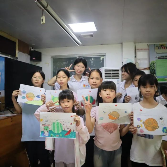 創作結束,孩子們興奮舉著作品“曬”創意。從緊張羞澀到大方講述,每一次分享都是成長的跨越。“我畫的圓是地球,要和小伙伴一起保護它”,稚嫩話語藏著大擔當;“這是奶奶的鏡子,照出她對我的愛”,細膩情感打動全場 。這不僅是繪畫交流,更是鄉村孩子表達自我、傳遞溫度的窗口,讓美育真正成為滋養心靈的養分。
