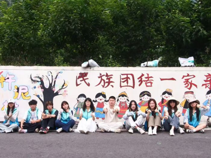 為提升當?shù)芈糜挝Γ瑧?yīng)杵坭村需求并結(jié)合團隊規(guī)劃,視覺傳達專業(yè)同學以“民族團結(jié)一家親”為主題,精心繪制了一幅長達10米的墻繪。同時,團隊計劃在暑期充分挖掘當?shù)刎S富的紅色文化和櫻桃谷地域特色,為杵坭村設(shè)計獨具特色的IP形象和文創(chuàng)產(chǎn)品。團隊將持續(xù)優(yōu)化設(shè)計方案并不斷跟進,確保完成從圖紙設(shè)計到量產(chǎn)的完整轉(zhuǎn)化,實現(xiàn)成果順利落地實施。