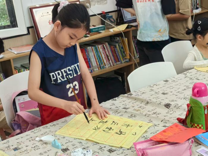 圖3小朋友正在認真完成自己的毛筆字作品。肖瑾琪供圖