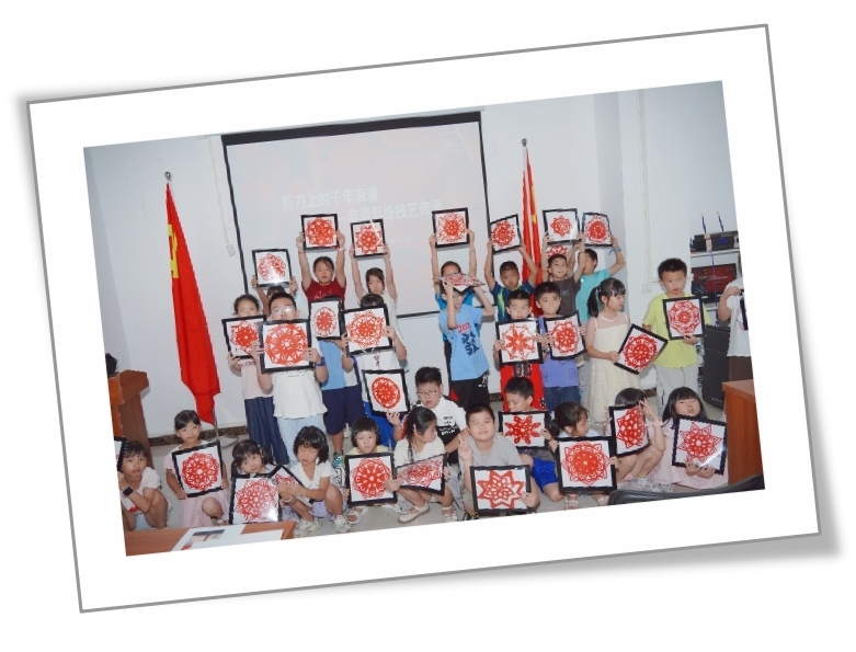 小朋友們舉起自己的剪紙合照 吳新宇 攝