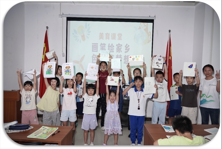 美育課堂上,孩子們手握彩筆,在畫紙上綻放童真想象,用色彩和線條編織夢想、勾勒未來。