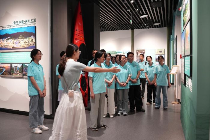 實踐隊在三明市生態文明建設實踐主題展館學習“兩山”理論,鄭棋銘攝