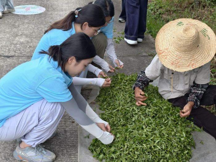 實踐隊向采茶農學習采茶技巧,李詩梅攝