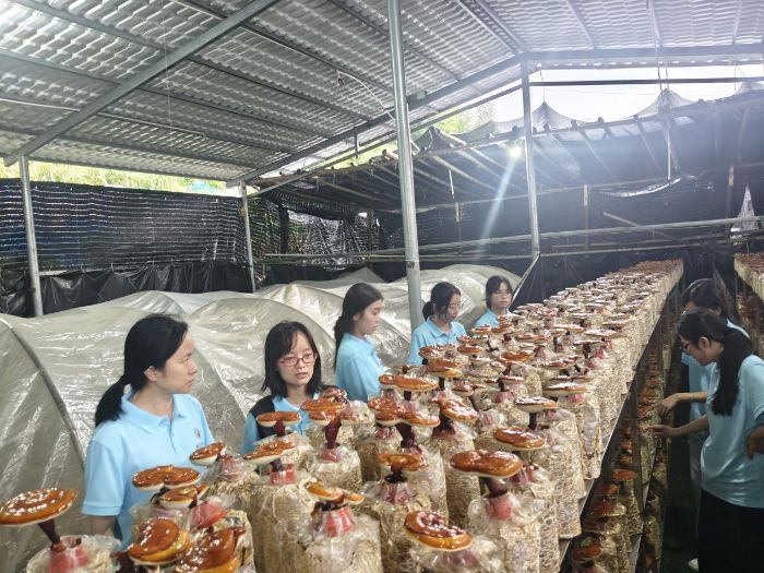 實踐隊員在華興鎮仙峰村調研靈芝的種植與養護過程,鄭玉玲攝