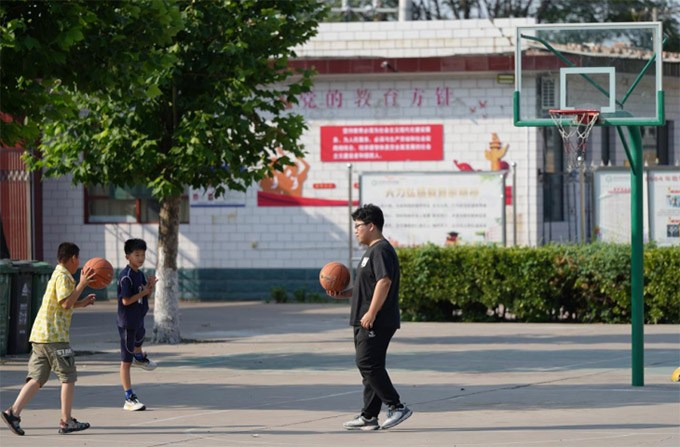 圖為孩子們與老師投籃場景。徐陳佳 供圖