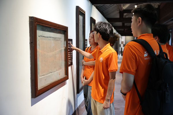 7月8日清晨,實踐隊成員懷著崇敬之心走進全國重點文物保護單位三蘇祠。在專業講解員的帶領下,隊員們系統考察了三蘇祠的建筑格局、碑刻文物和園林景觀,重點對《豐樂亭記》石刻