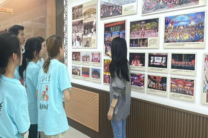 文化館尋根脈:解碼非遺千年密碼 7月14日,實踐隊走進翼城縣人民文化館非遺展廳,在鄒亞莉館長的講解中探尋花鼓底蘊。其中《翼城花鼓賦》的文字引人駐足,隊員們走近品讀,從字里行間感受著花鼓藝術的獨特魅力。展柜中,超百年歷史的楊家莊老花鼓靜靜陳列,見證著藝人們對這項非遺技藝的代代堅守與傳承。鄒亞莉館長則在照片墻前進行了詳細講解,向大家分享著花鼓從民間走向央視、世博會的成長軌跡。活動尾聲,館長贈書留念,為調研增添珍貴資料。