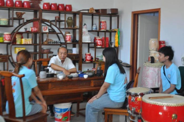 圖為國家級傳承人張飛飛老師為隊員詳解花鼓歷史與技藝(蘭甜馨攝)