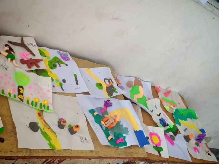 畫中有情,童心繪世界步入這間特殊的“展廳”,斑駁的墻面上擠滿了色彩明快的畫作,課桌上也擺滿了精巧的折紙和粘土作品。這些作品雖顯稚嫩,卻每一筆都蘊含著孩子們的真情實感。有的孩子畫了一棵“會治病的樹”,樹干上扎著彩色的針管,她說想讓奶奶的咳嗽快點好起來;有的孩子把爸爸媽媽外出打工的背影畫在了云朵上,笑著說:“這樣他們就能飄回來吃飯了。”這些畫里沒有固定的標準答案,只有最純粹、最坦誠的童心,讓人不禁為之動容。