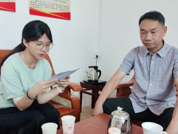 走訪鄉野,體悟內騰村鄉村振興實踐成果 7月14日上午,隊伍在韶關市湞江區團委的協助下順利抵達犁市鎮內騰村開展“萬名學子鄉村大調研”實踐活動。本次調研活動分為村委訪談與村內走訪拍照兩大板塊,并通過隊內分組進行同步工作。在村委訪談部分,團隊成員與村支書面對面進行問卷內容訪談并由其他隊員進行記錄工作。通過本次訪談,隊伍了解了內騰村的基本情況與鄉村發展建設狀況,為社會力量參與內騰村鄉村振興建設搭建信息流動的橋梁;在走訪拍照部分,隊員漫步于田間地頭,用水印相機進行實地走訪調研,用拍照方式記錄村容村貌、公共設施等狀況。
