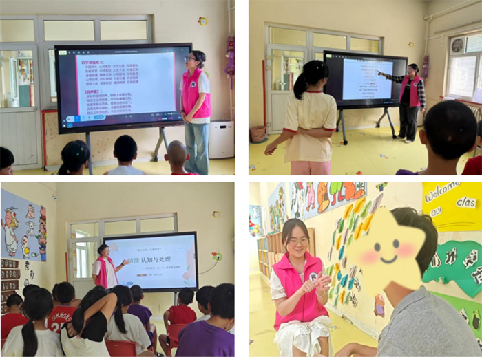 教師教育學院的同學們組織了各類教育活動,如手工制作、繪畫和閱讀,培養孩子們的創造力和想象力。此外,他們還為孩子們準備了心理輔導活動,幫助他們樹立學習自信和情感表達。