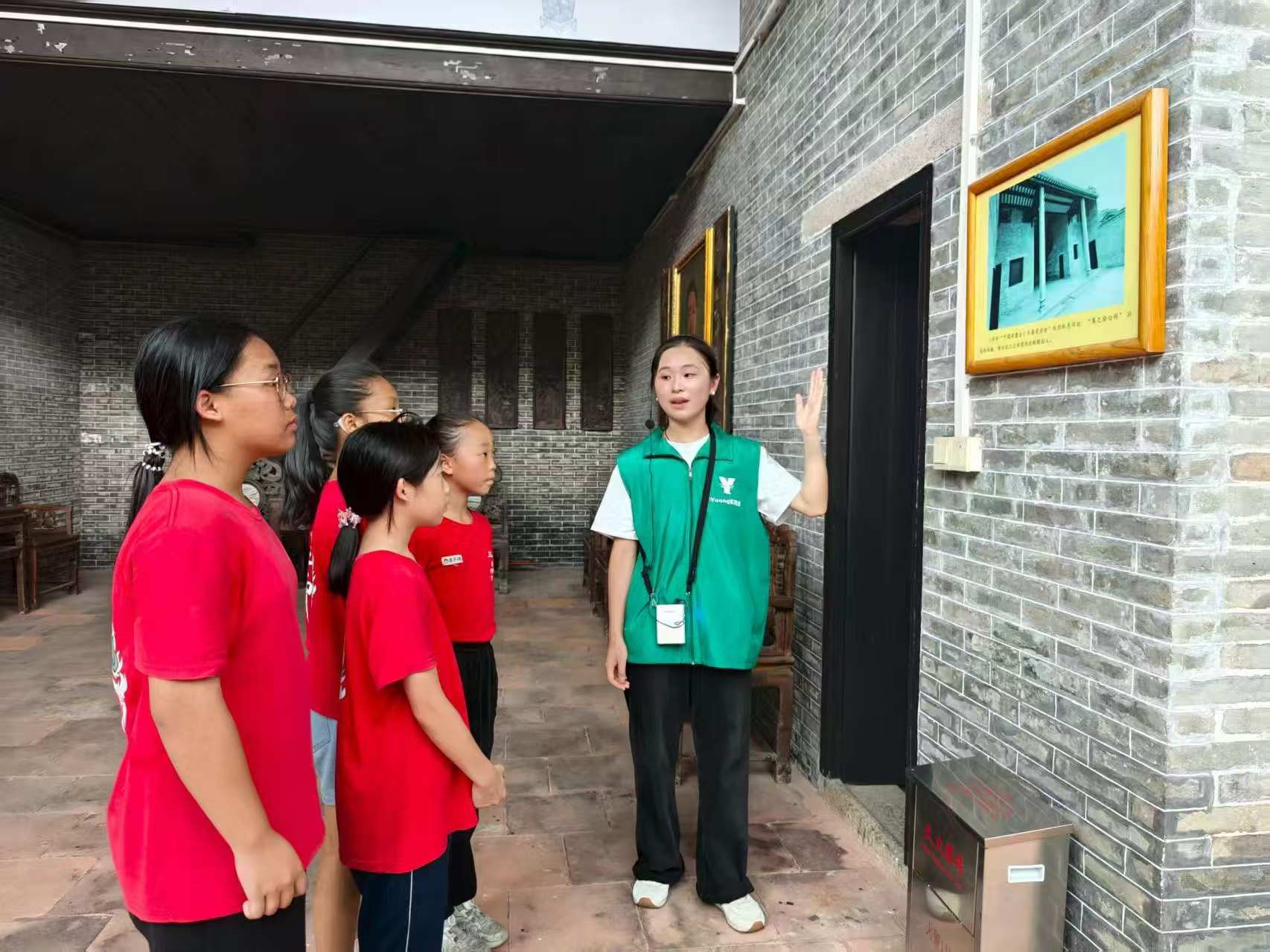 “同學(xué)們,匾額上的八個字——‘毀家紓難,功在黨國’,是由孫中山先生親筆題詞的。1920年,孫中山先生為褒獎黃花崗起義英烈的革命精神,親自為‘集之徐公祠’題匾,委派中國同盟會元老張繼先生送來三華村,將其掛在祠堂內(nèi),也就是我們現(xiàn)在腳下所站的地方。”宣講中,Young實踐團同學(xué)結(jié)合實地場景按照“中國同盟會番花分會舊址(以下簡稱舊址)門口—舊址中庭右側(cè)—舊址中疊—后閣樓—舊址中庭左側(cè)”的空間路線將黃花崗起義中三華村英烈舍身取義的故事娓娓道來。