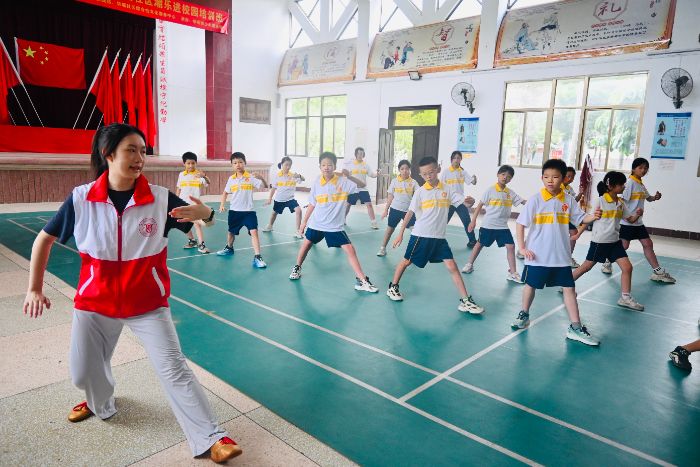體育:強健孩童體魄,涵養少年意志 傳統武術育素養。吳恩遐老師的“聲韻太極”課堂,以“大家覺得武術是什么?”的趣味提問引入,通過示范經典招式,讓孩子們在練習中鍛煉身體協調性與專注力,領略中華傳統武術的深厚底蘊。
