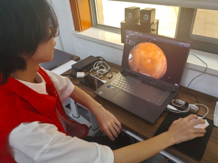 在隨后的科普過程中,志愿者帶領(lǐng)孩子們從地球出發(fā),一步步轉(zhuǎn)向夜晚的星空,帶領(lǐng)同學(xué)們通過“虛擬星空VR”網(wǎng)站,帶領(lǐng)同學(xué)們尋找北斗七星,天狼星,以及南十字座等著名天文坐標(biāo),得到了同學(xué)們熱烈的回應(yīng),在此之上,志愿者引導(dǎo)孩子們把視角轉(zhuǎn)向地球之外的宇宙,用簡(jiǎn)單通俗的語(yǔ)言為孩子們講解八大行星以及冥王星的基本特征。通過水星“有很多痘印”,金星“一年四季都是夏天”等通俗易懂的方式,形象的解釋了八大行星所具有的天文現(xiàn)象,讓遙遠(yuǎn)的天文知識(shí)變得和孩子們身邊可以感覺到的事物一般,引導(dǎo)孩子們培養(yǎng)聯(lián)想思維,學(xué)會(huì)用身邊的事物聯(lián)想解釋陌生的事物。