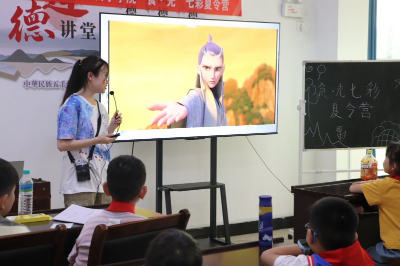 一、影像啟蒙:藝術感知的種子悄然播撒“構圖是畫面的骨架,讓每個元素各得其所。”瑤瑤老師指向幕布上的小王子,“就像星球上的他與星辰的呼應,疏朗間自有重心。”孩子們的目光在畫面上流轉,悄然領會著空間布局的奧秘。談及色彩,暖黃與冰藍在屏幕上形成鮮明對比:小王子的色調藏著童真的溫度,敖丙的冷色裹著澄澈的風骨,色彩本就是無聲的敘事。有同學抬手輕觸臉頰,仿佛在感受兩種色調帶來的不同心緒。