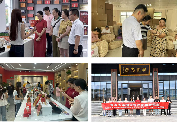 深耕非遺與產(chǎn)業(yè),挖掘“洛南價(jià)值” 實(shí)踐期間,團(tuán)隊(duì)深入非遺工坊與產(chǎn)業(yè)園區(qū),用專業(yè)視角解碼鄉(xiāng)村振興密碼。在王家豆腐坊、巧手草編合作社、“金陵金箔”體驗(yàn)店,學(xué)子們?cè)敿?xì)記錄百年豆腐工藝的138款產(chǎn)品迭代、草編產(chǎn)業(yè)“年產(chǎn)值2000萬(wàn)、帶動(dòng)6800人就業(yè)”的發(fā)展歷程,以及金箔與倉(cāng)頡文化融合的創(chuàng)新實(shí)踐。通過(guò)拍攝工藝流程、設(shè)計(jì)短視頻腳本,將老手藝的文化內(nèi)涵轉(zhuǎn)化為可傳播的視覺(jué)語(yǔ)言,為后續(xù)電商推廣積累素材。