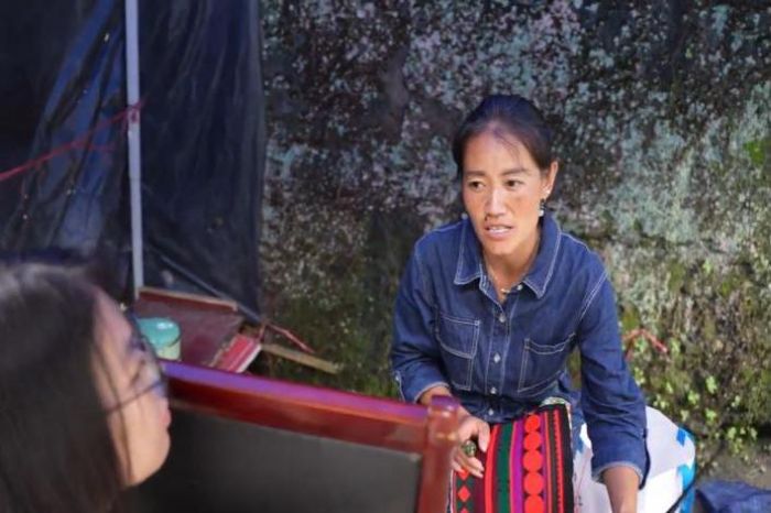 (圖為阿克媽媽正在接受隊員采訪。孫妮供圖)