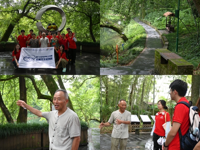 在習近平生態文明思想指引下,探尋藍冠噪鹛與綠水青山的共生密碼。7月17日,廈門大學化學化工學院“化被萬方”實踐隊深入江西石門村——這個因守護全球極危物種而重煥生機的村莊,用化學視角開啟生態探秘之旅。護鳥志愿隊隊長俞旺金在村頭文化服務中心熱情迎接學子們:“歡迎廈門大學的同學們!探秘就從田野開始吧。”