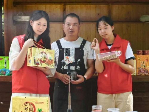 圖為筑夢團成員直播為當地特色美食宣傳蔣祺攝