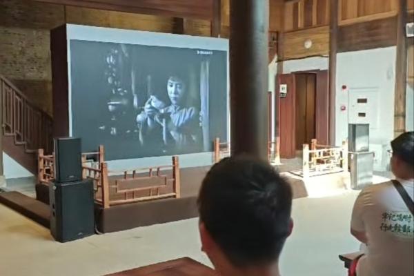 圖為團隊成員們在陶陽里歷史文化街區內觀看紅色電影《白毛女》